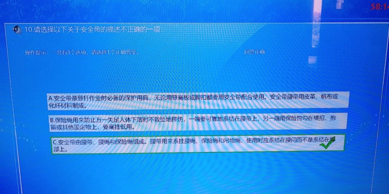 对安全带的检查:(1)安全带应是电工专用的,应在试验的有效期内。(2)带体应无严重磨损,金属件应完好,铆装部分应紧固,腰带扣好后应不能滑脱。(3)大带钩环应完好、开合自如,保险环应能可靠地锁定。