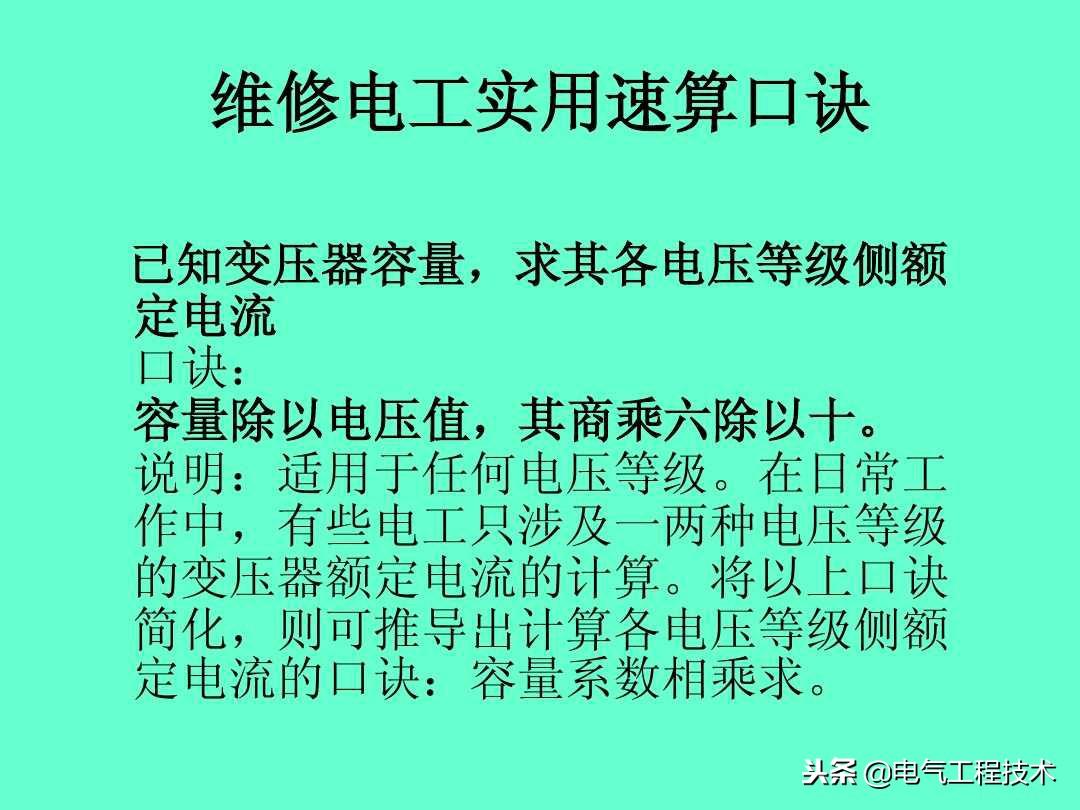 20个维修电工速算口诀,20年老电工总结,一年一个,实物技术干货