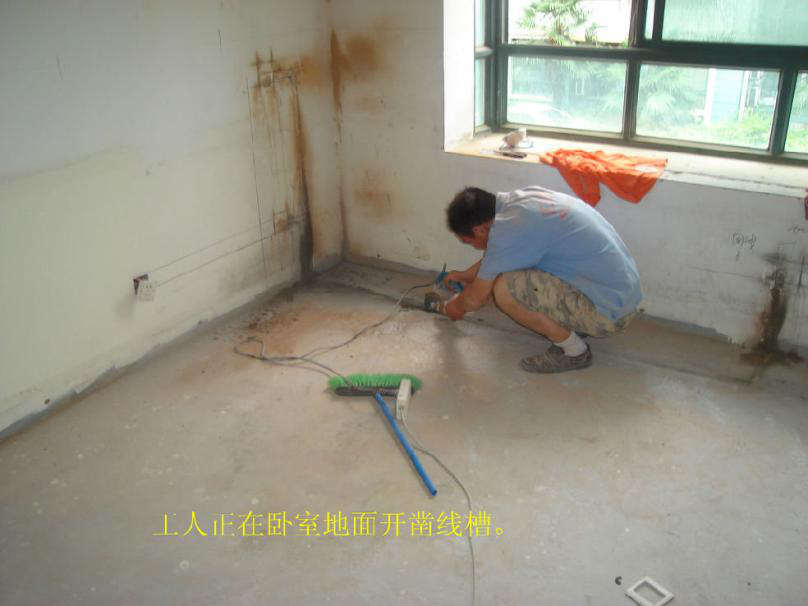 另外这位电工的专业之处,就是走线非常合理,例如上图那个地面走线,他没有沿着墙壁走,而是直接一条斜线拉过来,因为直接这样走斜线,能够使得线路的长度最短化,避免了电线的浪费,同时还节省了线管拐弯,避免电线弯曲或者折断。