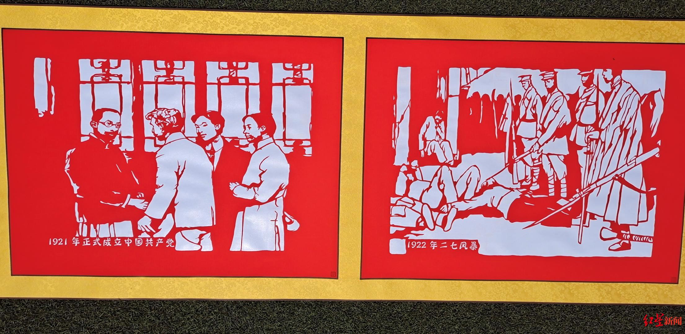 广州起义、井冈山会师、飞夺泸定桥、李大钊、方志敏……一幅长41米,宽60厘米的剪纸作品,50个红色故事生动一一呈现,展现了中国共产党的光辉历程,也刷新人们对剪纸艺术的认知。