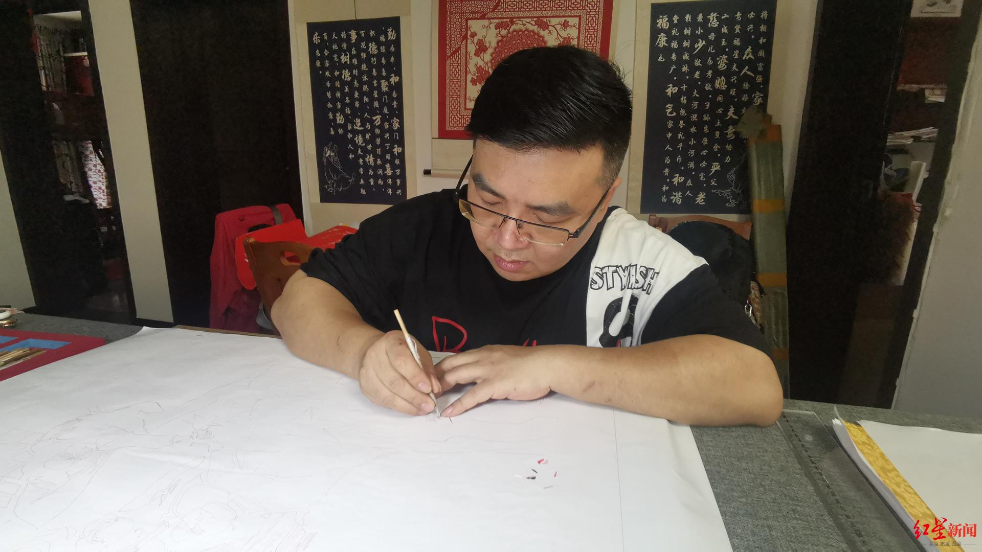 有了思路,动手做起来就很快了。“用了两个月进行构思、画图,用45天进行剪、刻。”陈智强说,虽然他的剪纸速度比较快,但由于“工程量”浩大,他仍担心在6月底之前完成不了。为了赶进度,除了上班,他几乎将所有的业余时间都花在创作上。经过三个多月的创作,作品在5月初完成。