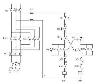 根据给定的电动机容量选用各种电器、导线并实际接线1、根据给定的电动机容量计算其额定电流(In):估算,按每千瓦2A(仅适用于额定电压为380V的三相交流异步电动机)。2、开关(QS或QF)的额定电流:(1)如使用刀关开:可使InQS≥3In。(2)如使用空气开关:可使InQF=In或略大于。3、主回路熔断器(FU1):可在InFU=(1.5~25)In范围内选取。4、交流接触器(KM):可在Inkm=(1.3—2)In范围内选取。5、热继电器(FR):热元件的额定电流InFR可在(1~1.5)In范围内选取;热继电器的额定电流应不小于热元件的额定电流;其保护整定值IFR=In。6、主回路导线:按口诀选用。7、控制回路导线:可使用不小于1.5mm2绝缘铜导线。8、控制回路熔断器:可使用5A或10A的熔断器,装1~5A的熔丝。