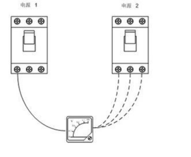 测量时先将表的第一端固定接在“电源1”的一相,表的另一端分别试测“电源2”的三相;然后再将表的第一端固定接在“电源1”的第二相,表的另一端分别测“电源2”的三相……共九次。