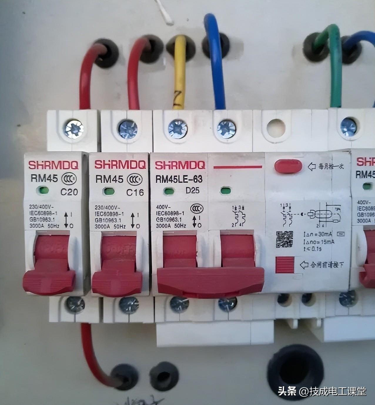 出线到各分箱HE为3x6平方电线,经单相电能表后再经25A的2P小型断路器到楼层分箱。如下图: