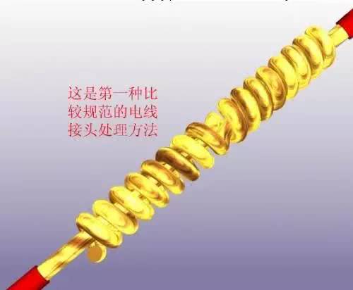1、下面是第一种接法。注意:在家装中是不应有接头的,特别是在线管内更不能有接头,如果有接头也应该是在电线盒内。通常的电线接头都是这样的接法,才能保证电线接头不发生打火、短路,与接触不良的现象。
