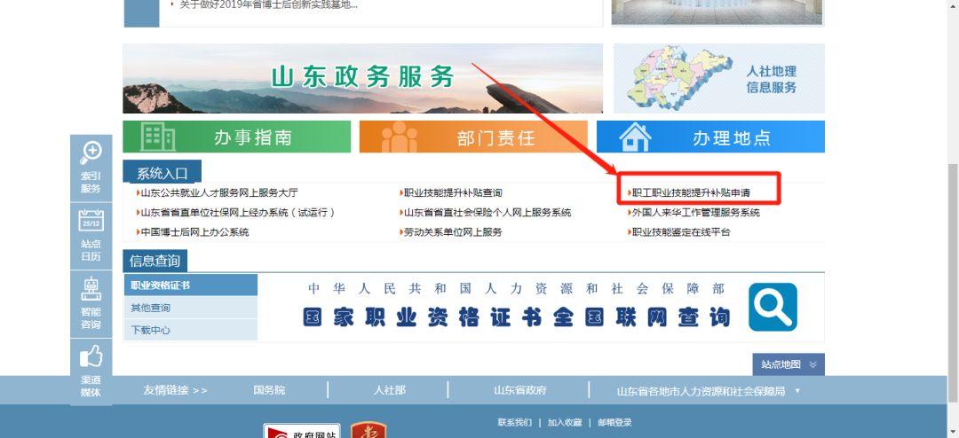 登录山东省人力资源和社会保障厅官方网站http://hrss.shandong.gov.cn→服务大厅→职工职业技能提升补贴申请→填写申报内容→提交→隔段时间→职业技能提升补贴查询(注安师、消防师等59项专业技术人员职业资格证书不能网上申请的,至参保地人工申请)。