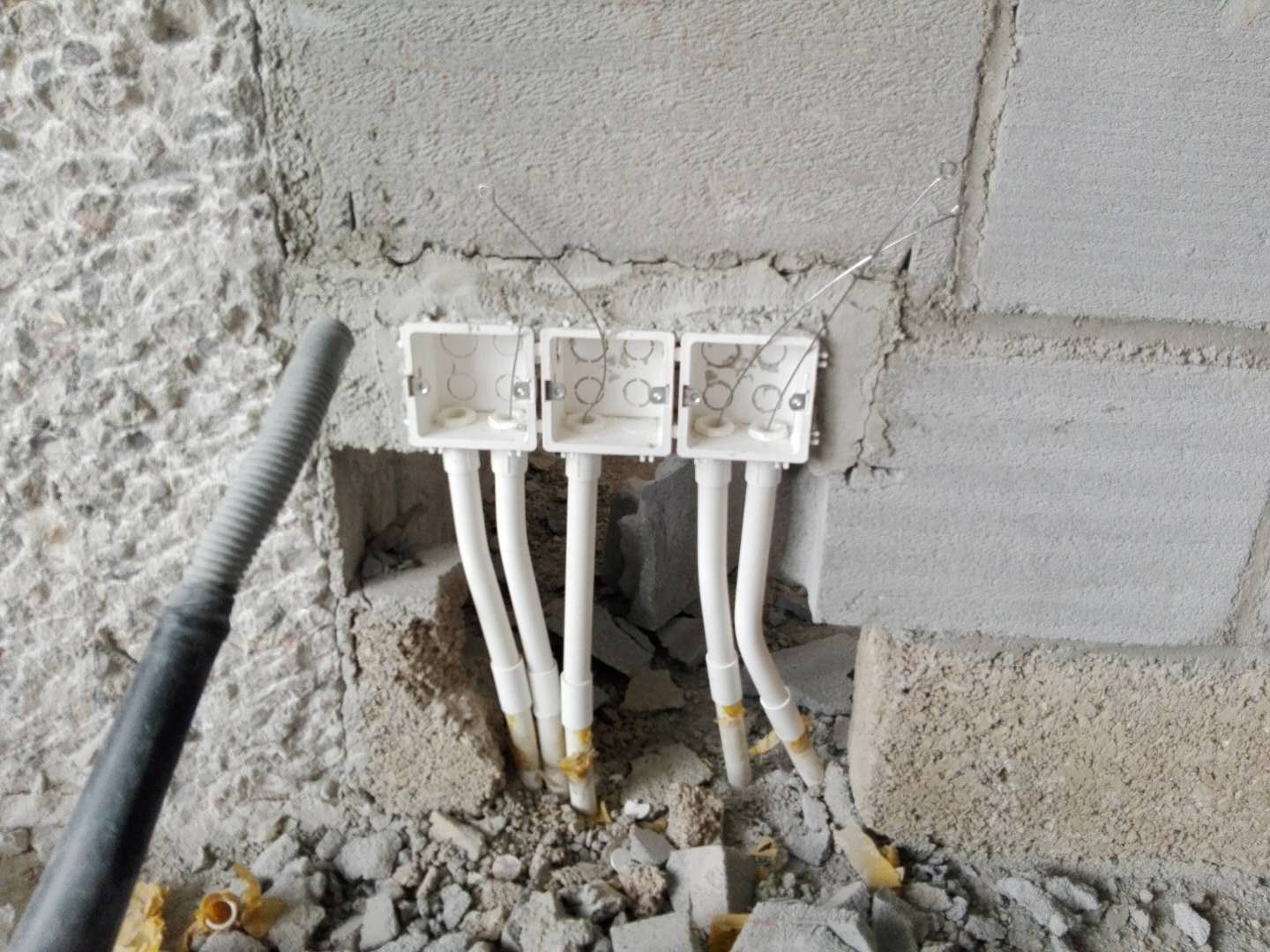 水电定位是包括两个方面,一是预埋的时候定位准确,二是配合二装的时候,比如剔槽埋管时安装暗盒一定要先看清楚灰点的基准。不然凭经验和感觉来做,以后如果暗盒高出墙壁太多,面板盖上去超出墙的完成面(腻子涂料或者墙砖面)太多就要返工。所以定位准确是整个承包工程最为关键的一环。做好了这项工作就可以说是成功了一半。