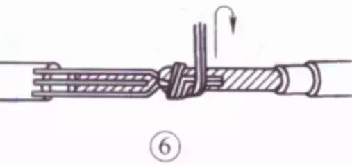 将每个线头在另一芯线上紧贴并绕6圈,用钢丝钳切去余下的芯线,并钳平芯线末端。