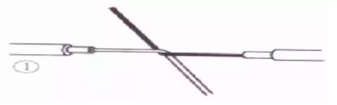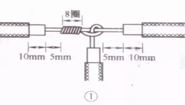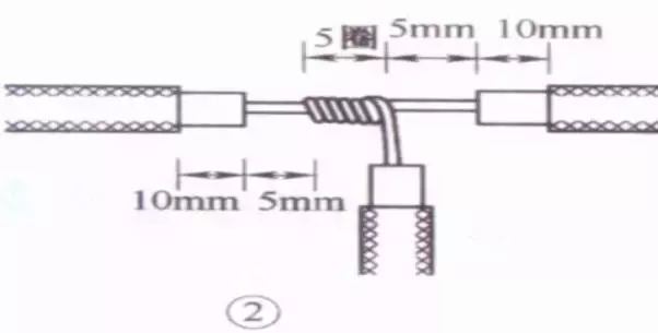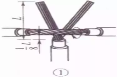 先在一端把邻近两股芯线在距叉口中线约3根单股芯线直径宽度处折起,并形成90°。