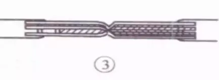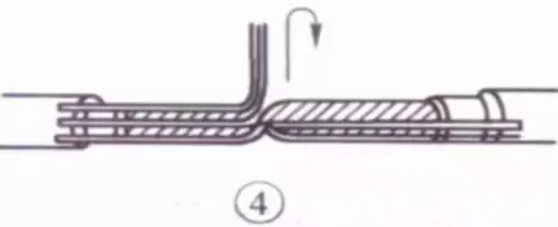 接着把处于紧挨平卧前邻近的2根芯线折成90° ,并按步骤⑤ 方法加工。