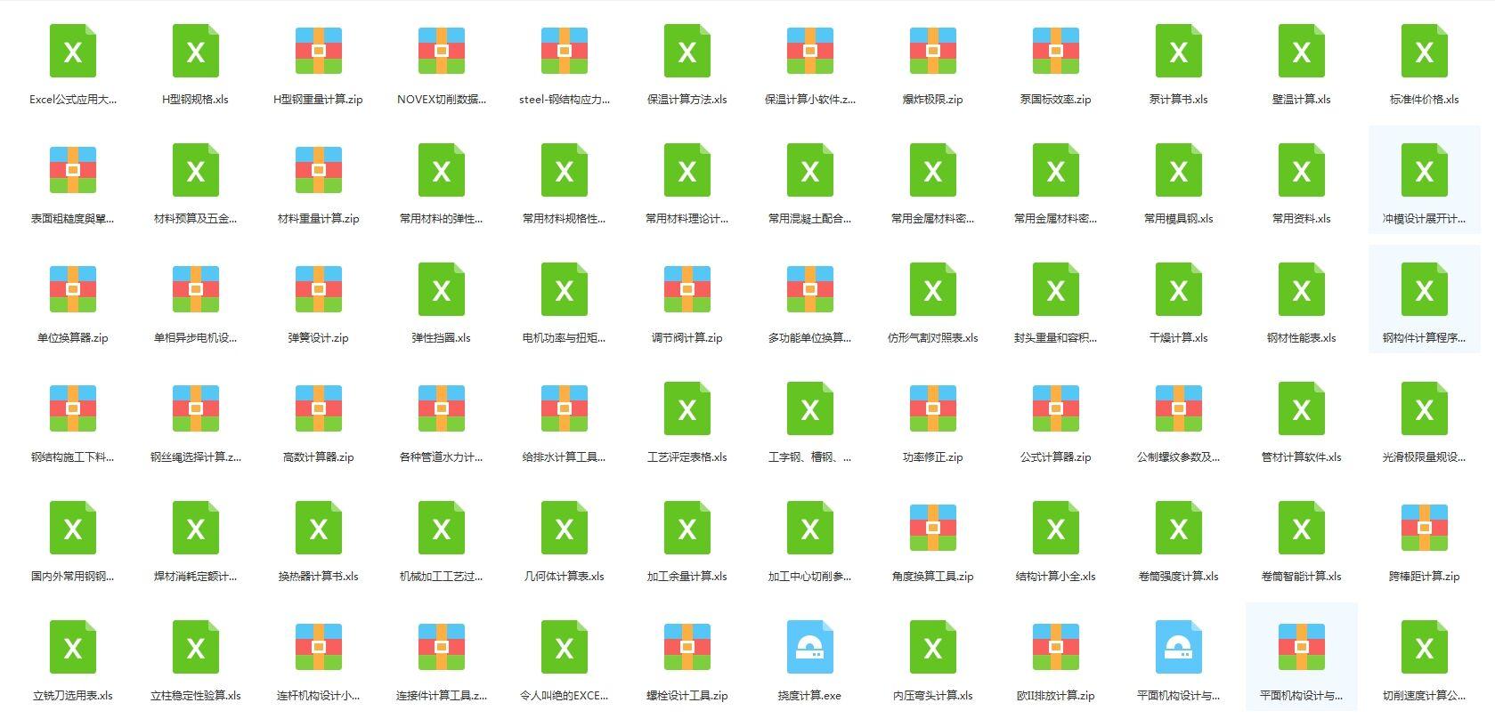 常用的设计工具(500套自动计算表格,其中包括各类传动校核、选型设计表格、尺寸自动计算表格、轴承校核、齿轮校核与设计等等)。