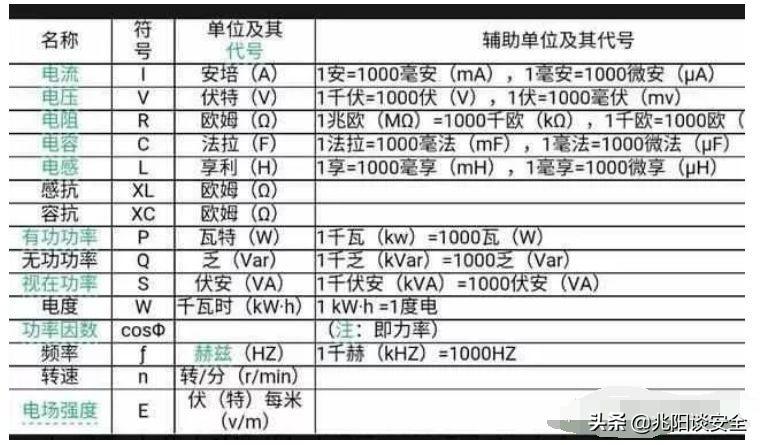 电工常用的符号及单位