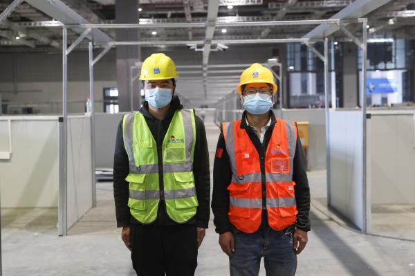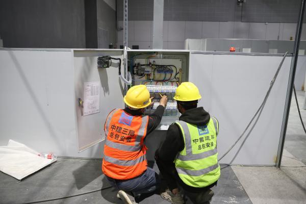 杜维、向舒华和工友们包干了4.1号馆约1500张床位电源的安装,一个床位有2个开关,在不眠不休的两天时间里,这支队伍共完成了3000个电开关的安装任务。