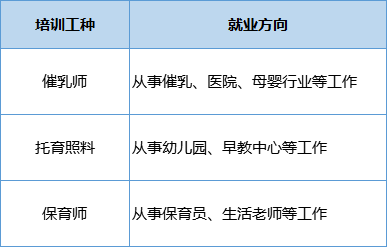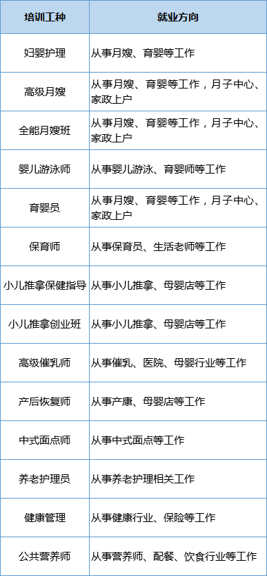 保育师、妇婴护理、育婴员、养老护理员、美容班