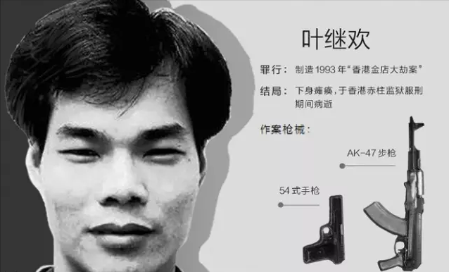 1991年6月9日,叶继欢带领五名团伙成员每人手持一把AK47在10分钟内抢劫五家金店。