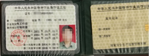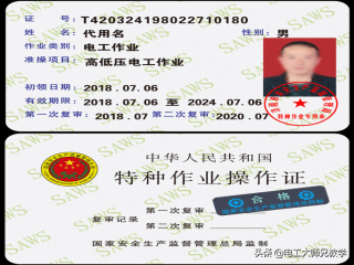 它分高压和低压,这是电工人员必须持有的一种证书!新版电工操作证3年为一次复审周期。