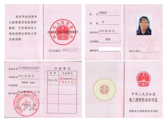 这种也证书是分高压和低压的,区别于电工操作证,这种证书一般在供电局上班的人员都是考电工进网许可证.。