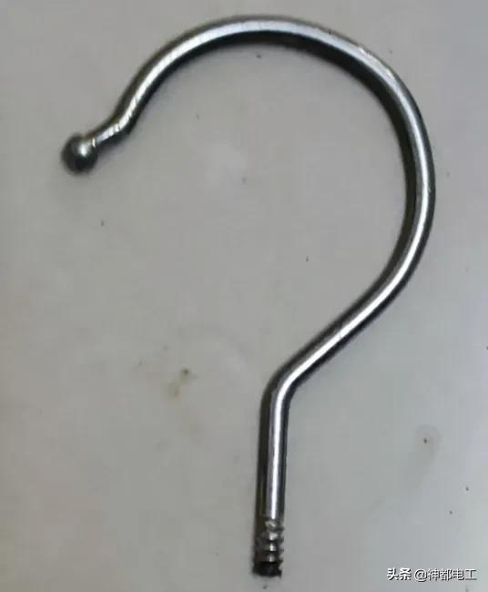 第一步:材料准备。准备一根约15㎝长的8号铁丝。我用的是衣服撑的不锈钢钩子,不生锈硬度也够。