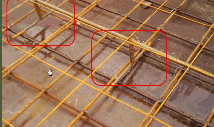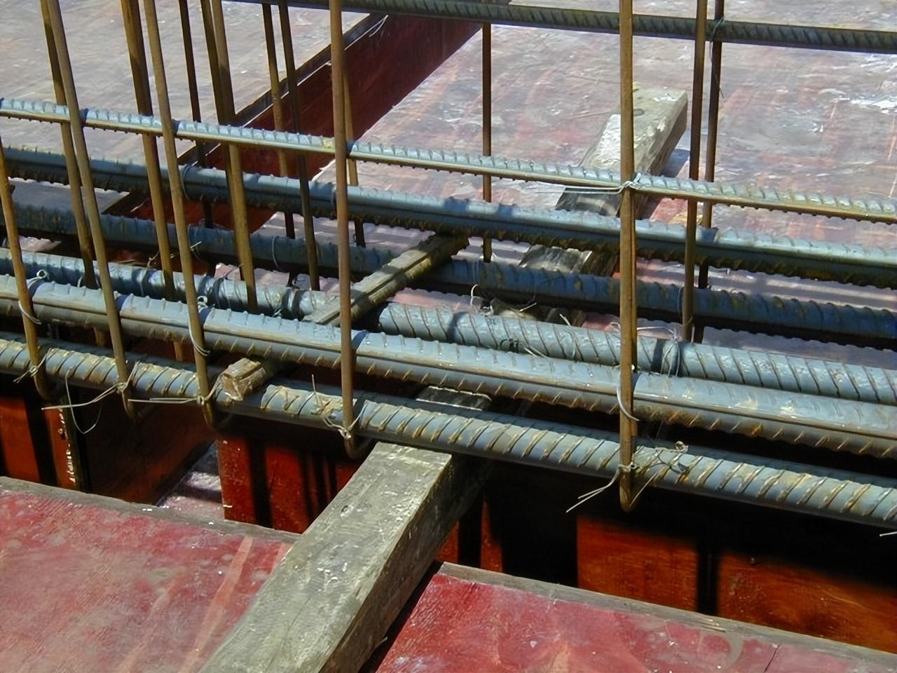 3.2绑扎完的梁、顶板钢筋,要设钢筋马蹬,人员行走最好沿梁方向,防止板的负弯矩筋被踩下移。
