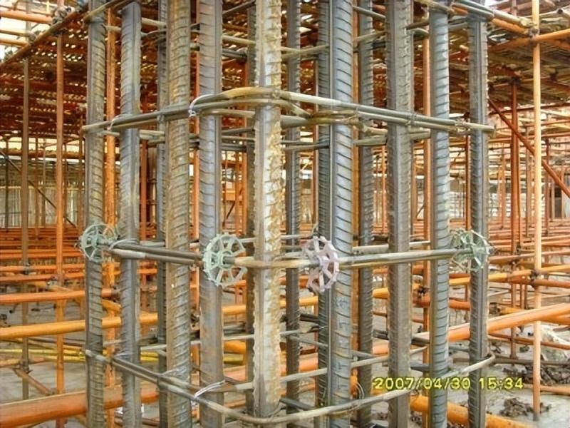 4.12板筋或箍筋间距用尺或画好相应设计间距的木条度量。由板或柱主筋边缘50起,在板上或主筋上按设计间距画好间距线,然后进行布筋和绑扎。