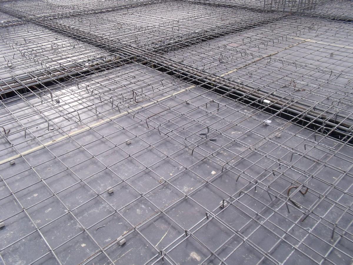 4.14.2板正筋底采用15厚的水泥砂浆垫块垫在最下边钢筋之下,间距为1000×1000;上下层钢筋间马凳,间距为1000×1000。