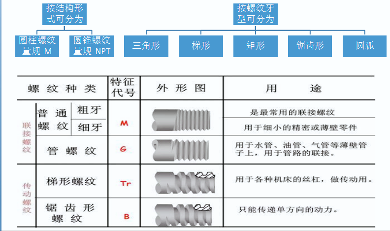 粗牙:UNC;细牙:UNF;不变螺距:UN