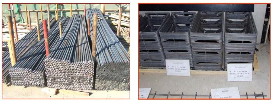 3.1钢筋在加工完成后应码放整齐,存放钢筋应采取架空措施以免遇水锈蚀。钢筋成品尤其是箍筋在运输过程中,不得随意抛掷、碰撞,以免钢筋弯曲或变形,影响钢筋的成品质量。