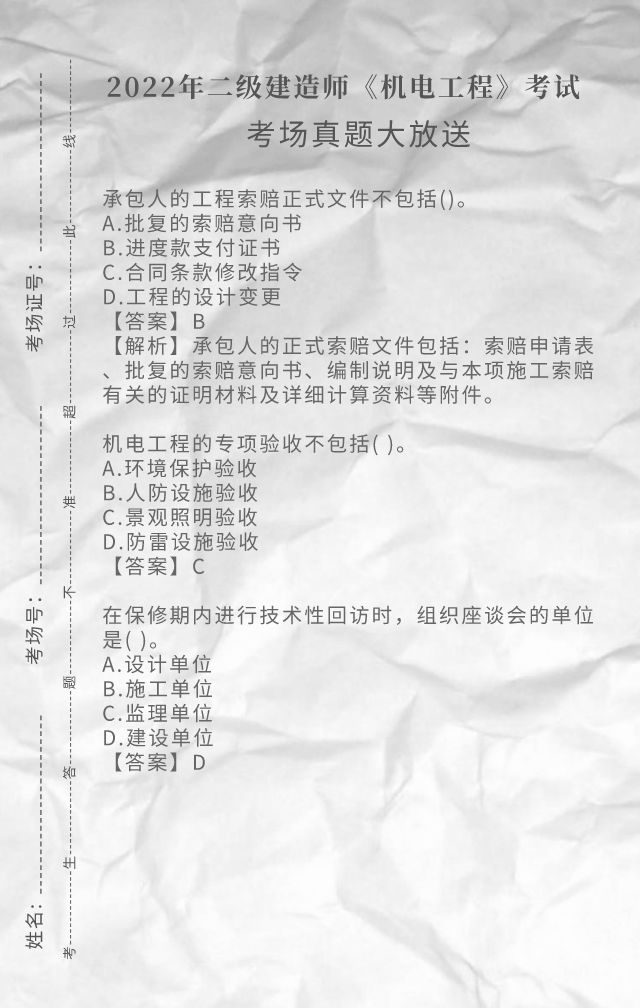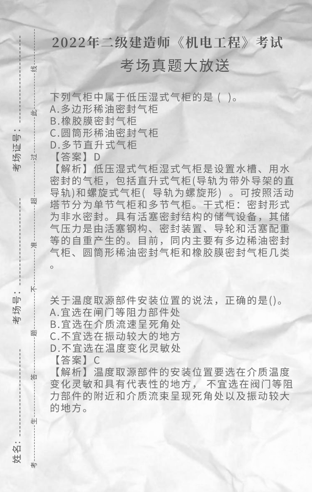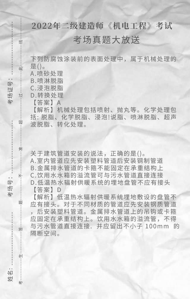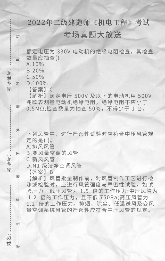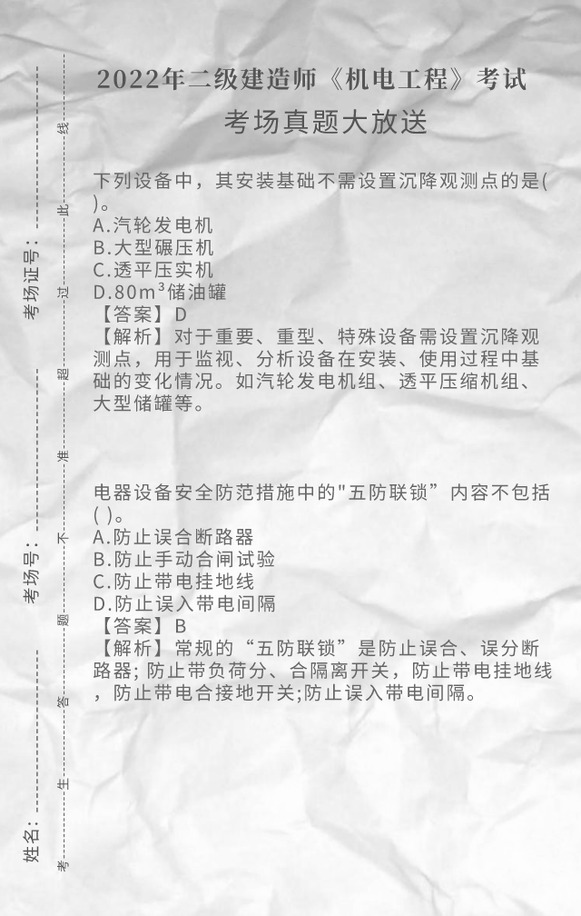 2022年二级建造师《机电工程》考试真题答案(完整版)