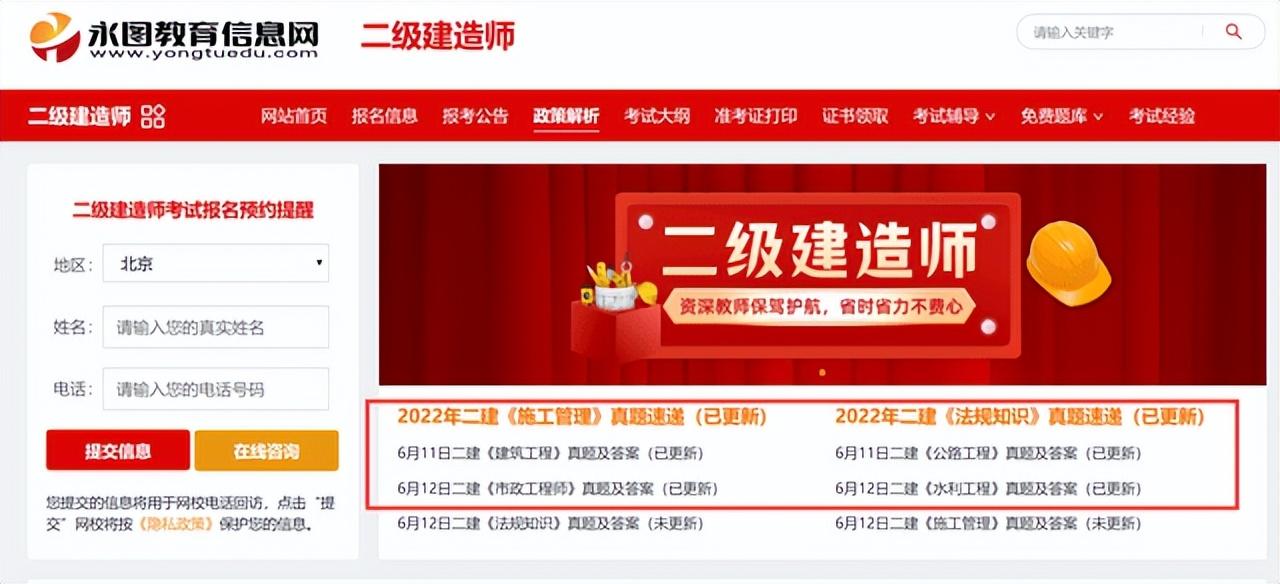 百度搜索【永图教育】进入二级建造师栏目获取二级建造师完整版真题答案