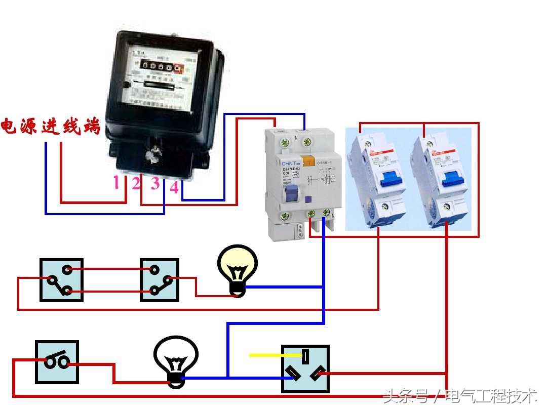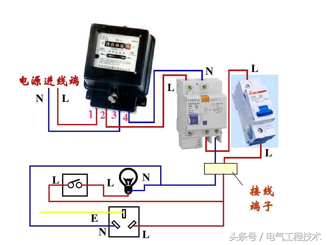 家庭电路是电工入门的基础电路,也是最简单的电路,几乎大部分的电工师傅都非常熟悉,对于刚入门学习电工技术的师傅而言,家庭电路也是比较好入门的途径,因为家庭电路相对而言比较简单,一般都是由电能表,进户线,空气开关和漏电保护器,插座回路和照明灯具等等组成,由单相电供电,在家庭电路中电能表的接线,空气开关和漏电保护器接线,插座接线,照明灯具接线是家庭电路线路的基本构成,因此掌握了常用的家用配电设备的正确接线就算简单的入门了,今天我们就重点来看一下:家庭电路的基本构成以及各部分应该怎么接线,希望可以给电工初学者提供一定的帮助: