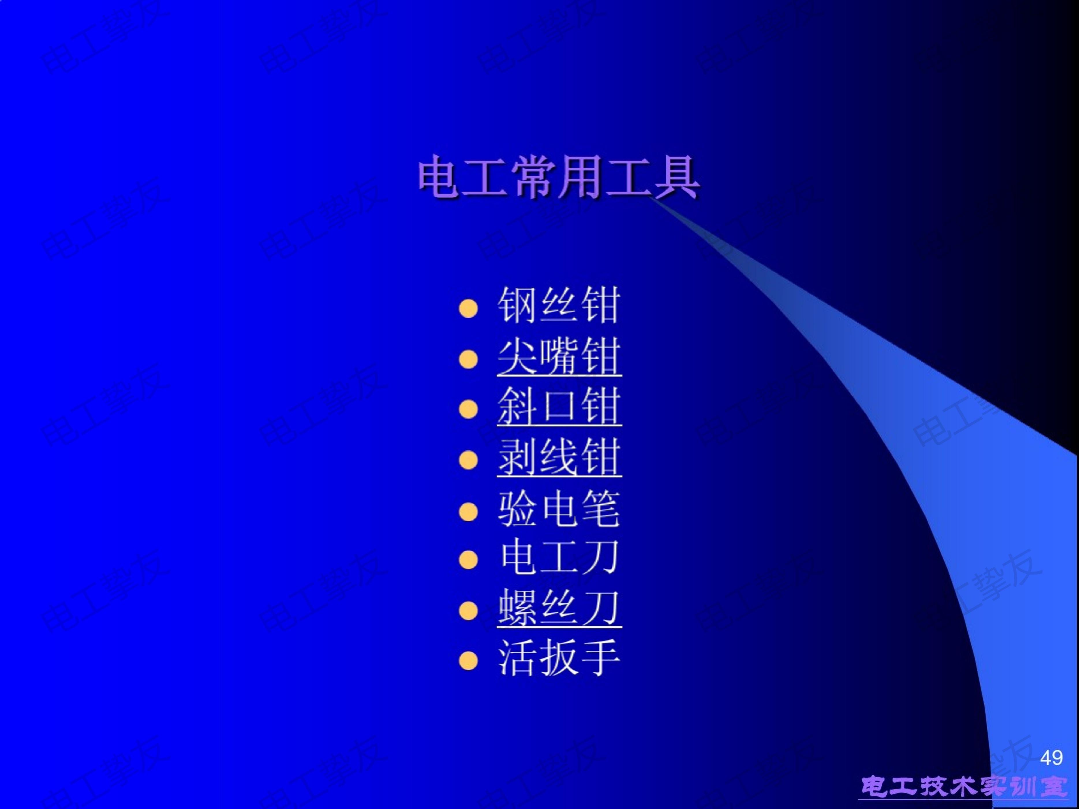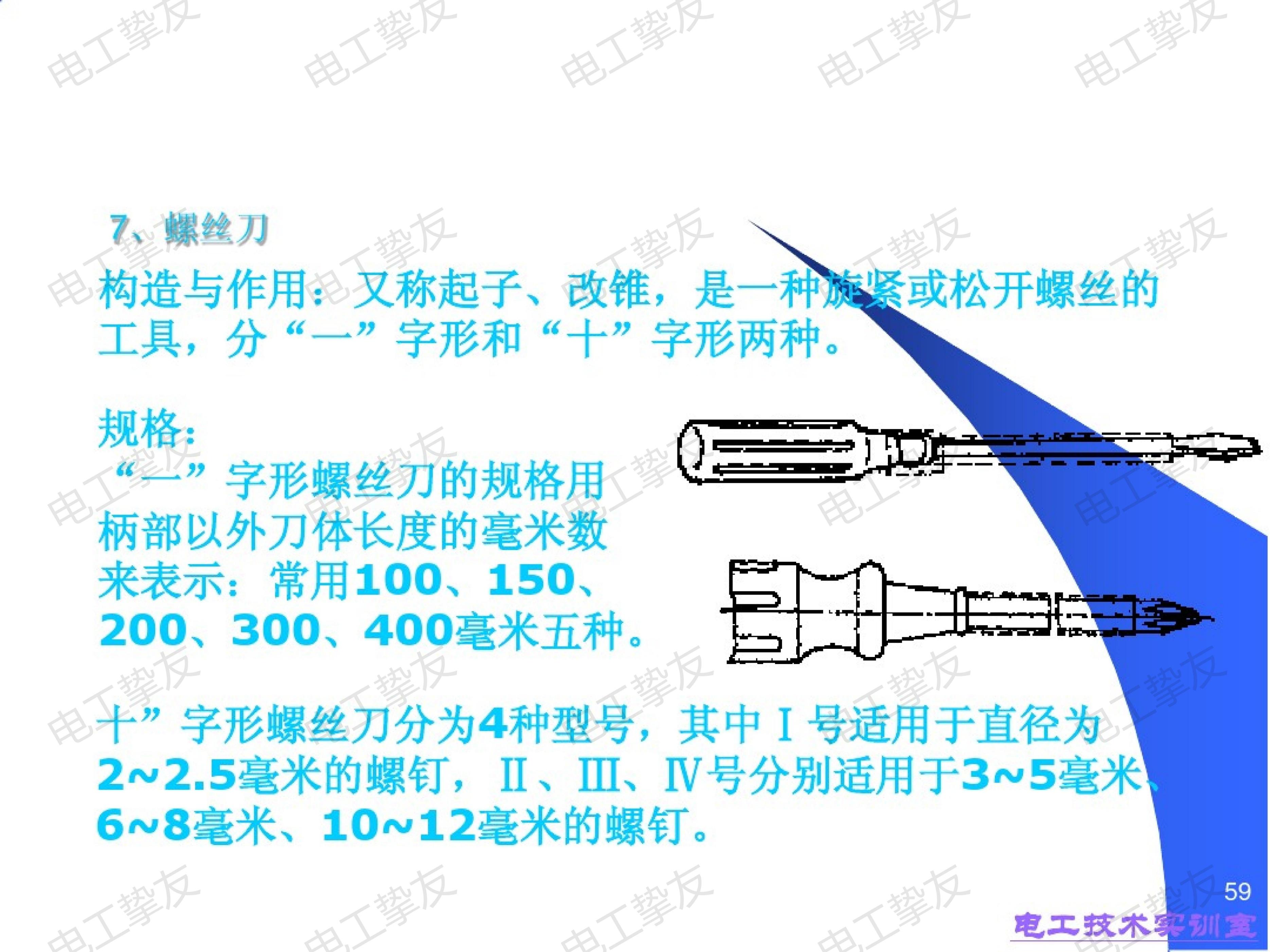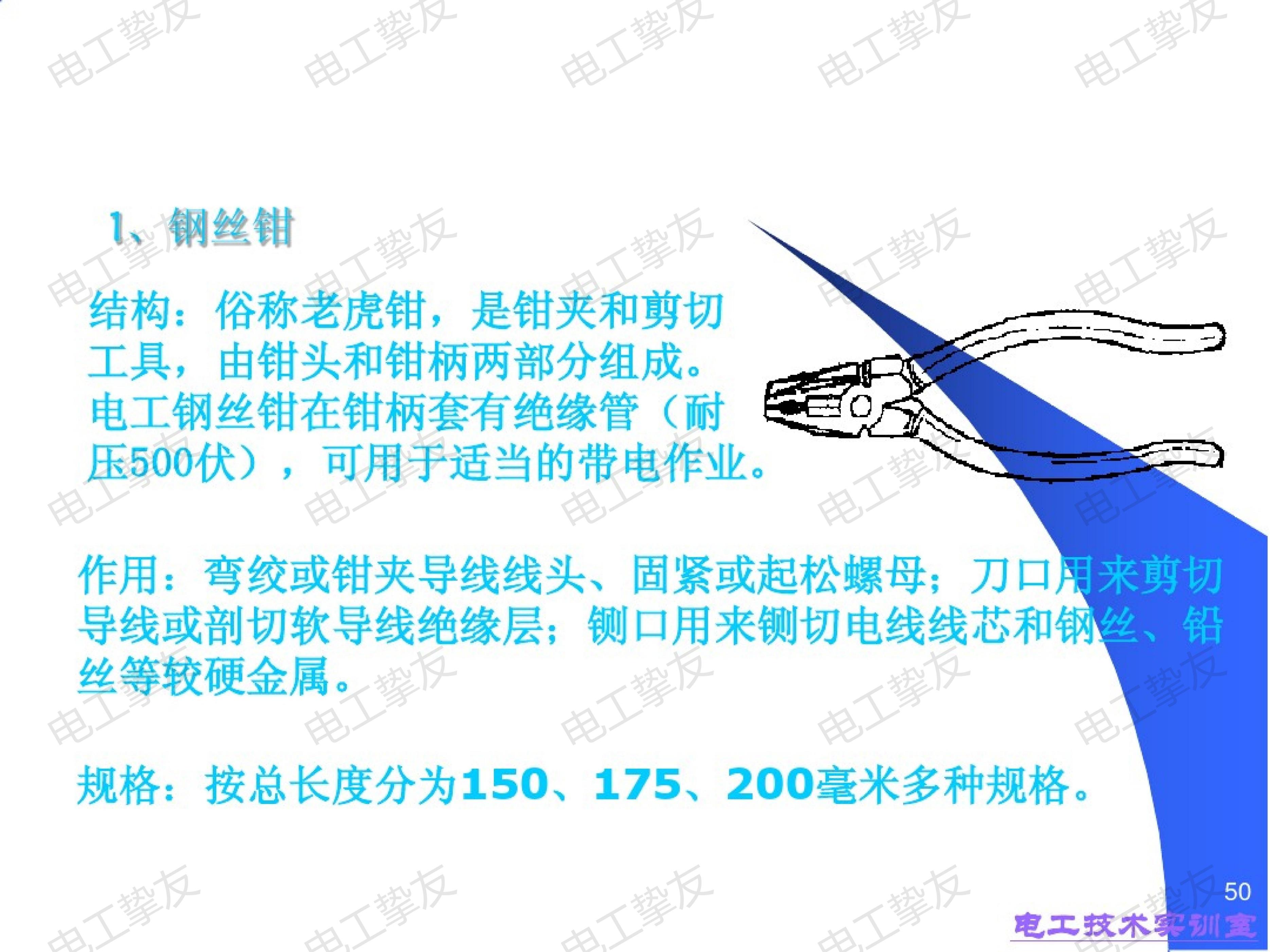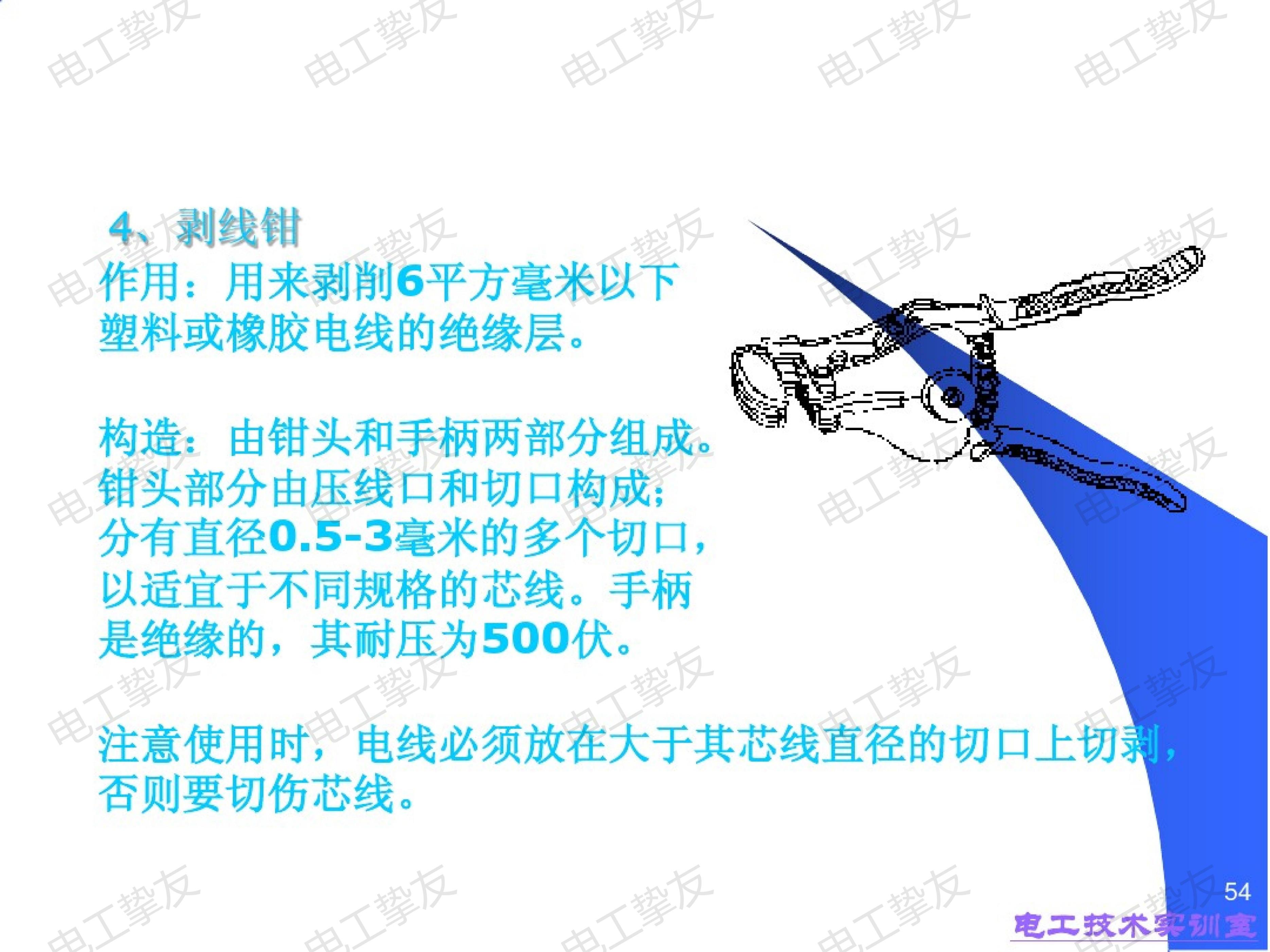 1、电工技能实训用到了哪些主要工具?它们的主要作用是什么?