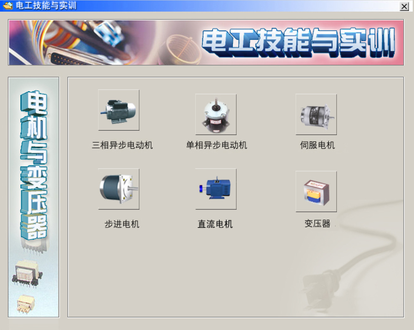 包含三相异步电动机、单相异步电动机、伺服电机、步进电机、直流电机、变压器。每一个仪器包含外型、结构、原理、检测子菜单。由动图及视频展示,更容易理解。
