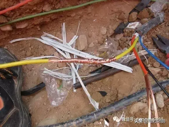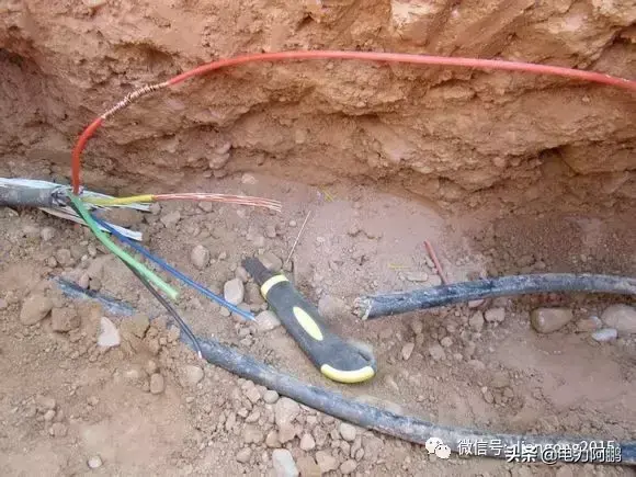 其实埋地电缆被圈围墙的农民工弟兄用角钢拦腰切断,有图为证。