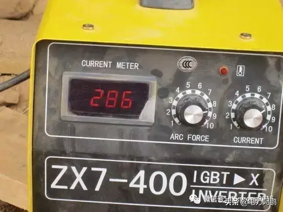 就是上面这台焊机,这是修好后的图片。上午修时没拿相机,这是下午拍的。现在看得可清楚了焊接电流286A,上午电流表无显示,什么都没有,只有后面的电扇在工作。