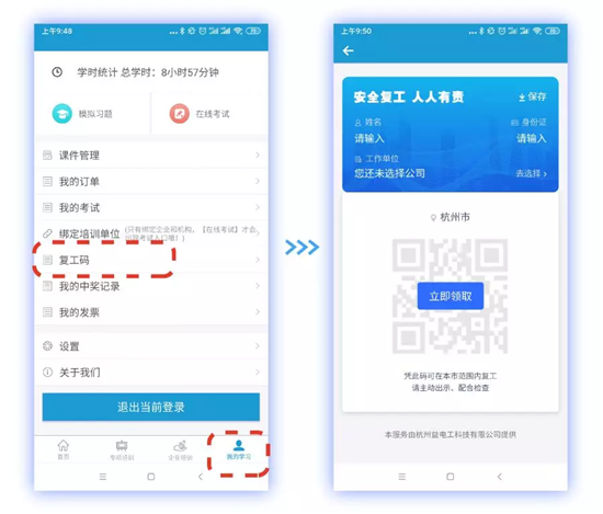 方案指出,要求外包队伍、厂家服务人员及无法在省公司“浙江安全学习平台”开展复工安全学习的各类用工人员,在“e电工云课堂”app按工种参加线上学习线上考试,成绩合格生成“复工码”。