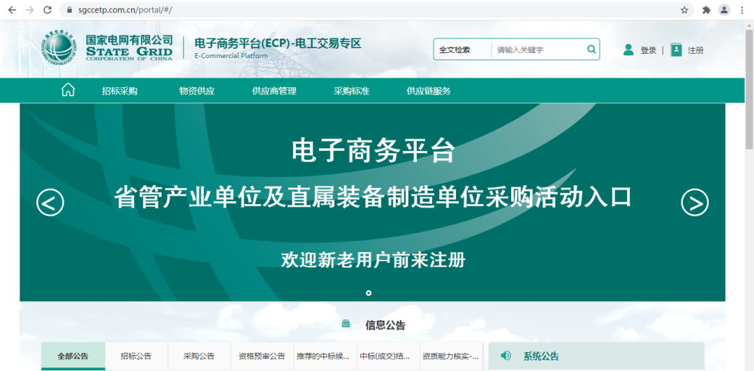 国网电子商务平台-电工交易专区(ETP)是承担全国省管产业单位、五家装备制造单位的招投采购工作。