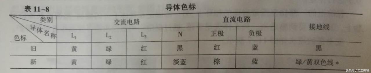 在母线排或电缆线芯中分别用黄绿红表示ABC相,淡蓝色表示N线,黄绿相间用作接地线。