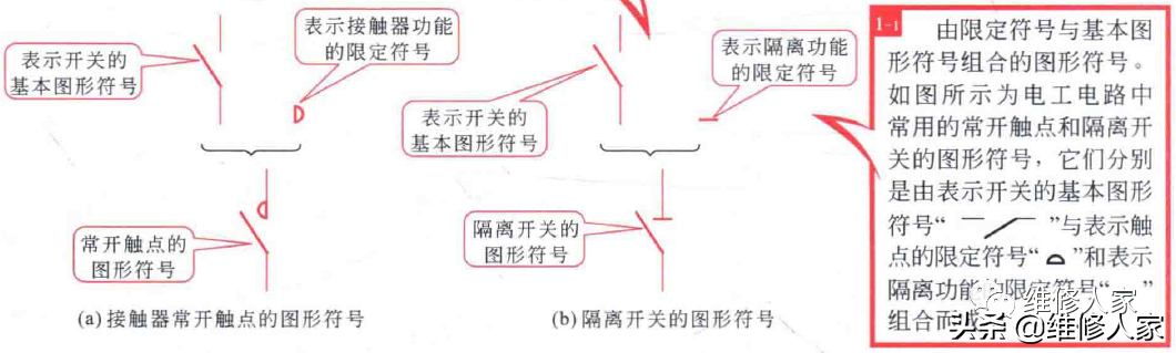 此外,还有些图形符号则是由符号要素+基本图形符号+限定符号构成的,因此只要掌握基本的符号要素、一般符号和限定符号的相关含义或功能,基本上便掌握了图形符号的基本含义。