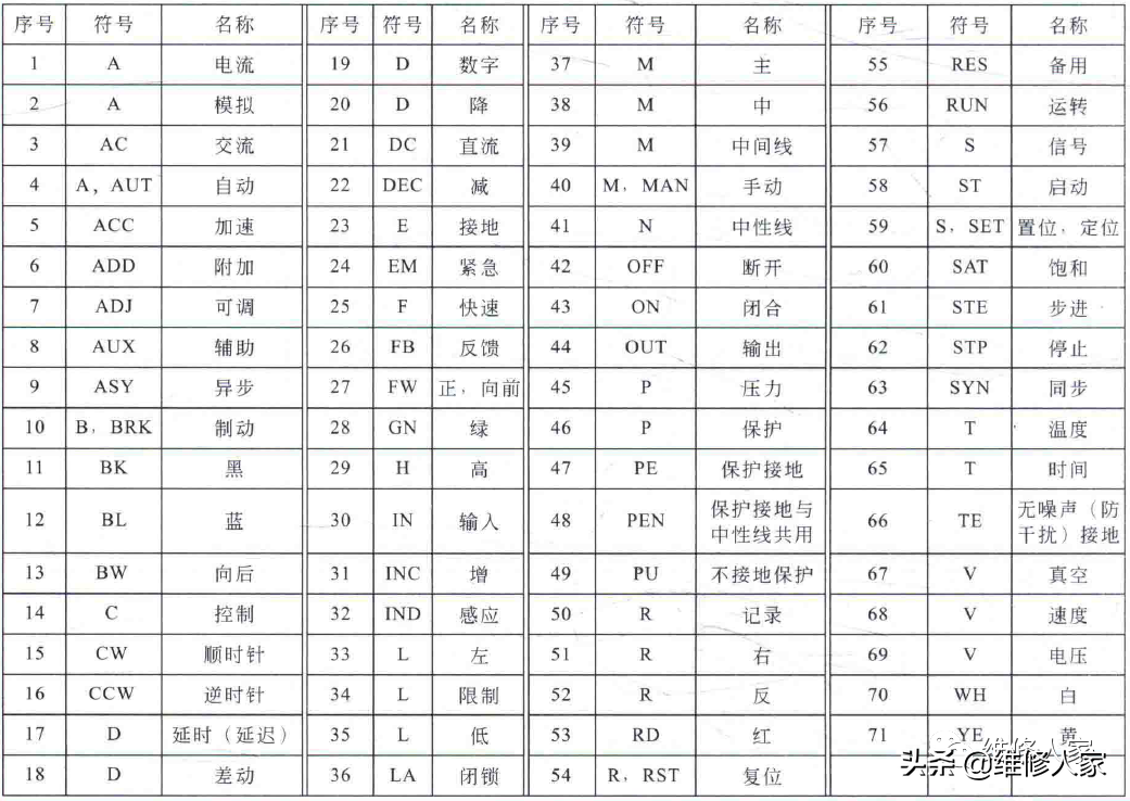 除了上述几种基本的文字符号外,为了实现与国际接轨,近几年生产的大多数电气仪表中也都采用了大 量的英文语句或单词,甚至是缩写等作为文字符号来表示仪表的类型、功能、量程和性能等。