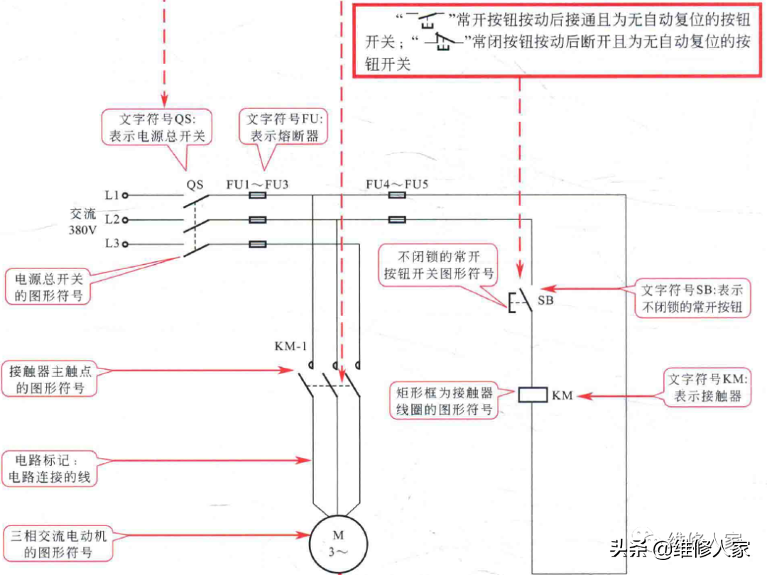 读懂电工电路首先应建立图形符号与电气设备或部件的对应关系以及文字标识的含义,才能了解电路所表达的功能、连接关系以及工作流程。