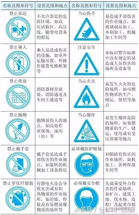 多个安全标志牌在一起设置时,应按警告、禁止、指令、提示类型的顺序,先左后右、先上后下的排列。安全标识牌是以红色、黄色、蓝色、绿色为主要颜色,辅以边框、...