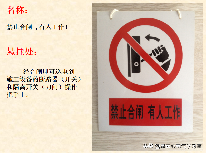 二、名称:禁止合闸 ,有人工作!