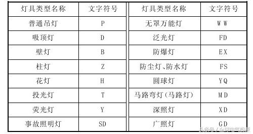 (2)灯具的名称及表述符号灯具类型名称