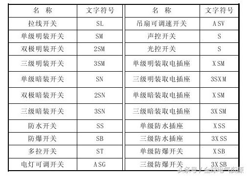 (4)照明开关及取电插座的表述符号