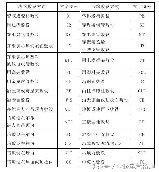 (1)常见的线路敷设方式及表述符号