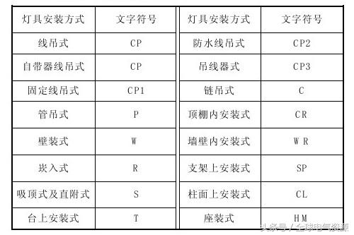 (3)灯具安装方式和表述符号灯具安装方式