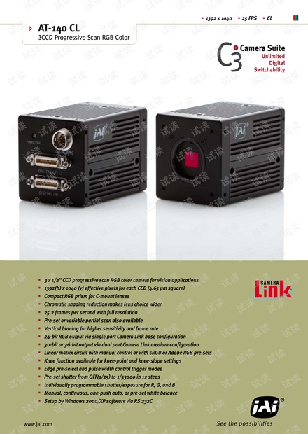 产品规格书(Datasheet):这是最核心的技术圣经。它不谈虚的,全是硬核参数:传感器型号、分辨率、帧率、像素尺寸、光谱响应、接口类型(比如是GigE Vision还是USB3 Vision)、功耗、机械尺寸……当你需要在多个品牌和型号间做选择题时,就得靠对比这些规格书-5。比如同时比较埃科光电的2500万像素相机和某个200万像素相机的参数,你才能知道哪个更适合你对精度和速度的要求-5。